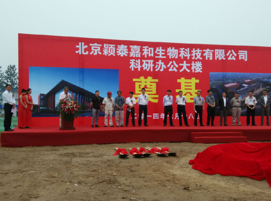 The ceremony began. First, the host Zhou Nan introduced the leaders and guests who participated in the ceremony. For this groundbreaking ceremony, we were honored to invite Mr. Wang Wenli, General Manager of Beijing Zhongguancun Life Science Park Co., Ltd., Mr. Jin Guowei, Deputy General Manager, Mr. Ma Jianhua, Deputy Manager of Planning and Engineering Department, and General Manager of Create (Shanghai) Decoration Engineering Co., Ltd. Mr. Xingji Mingtori, Deputy Chief of Planning and Operation Department Daisuke Anbu, Director of Engineering Mr. Fangsheng Sasaki, Mr. Tong Jianshe, General Manager of Beijing Headquarters of Nantong Fourth Construction Group Co., Ltd., Mr. Xing Weidong, Manager of No.6 Construction Branch, President of Beijing International Finance Management Consulting Co., Ltd. Mr. Shen Bai, Mr. Fang Yunfei, Director of the Architectural Design and Research Institute of Tsinghua University, Mr. Liang Zengxian, Technical Director, and Mr. Yang Ping, Operation Director of Syngenta Biotechnology (China) Co., Ltd. Afterwards, all the guests delivered congratulatory speeches in turn to congratulate our company on the smooth start of the R&D center project. Immediately afterwards, Vice Chairman Jiang Kangwei announced the start of construction. At the same time, six construction vehicles honked their horns together, and excavators began to dig soil, indicating that the project began to break ground. The company's general manager Wang Rong and Nantong Sijian Group Co., Ltd. project manager Xing Weidong unveiled the cornerstone. In the sound of gun salute and whistle, the leaders laid the foundation stone and pushed the ceremony to a climax! In the end, the participants took group photos one after another, and the groundbreaking ceremony of the R&D center project of Beijing Yingtai Jiahe Biotechnology Co., Ltd. was successfully concluded!
